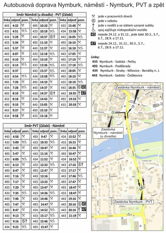 Občané mohou využít autobusovou dopravu mezi zastávkami Nymburk, Zálabí PVT a Nymburk, Náměstí. Od 15. ledna 2018 bude zavedena doprava zdarma mezi těmito zastávkami. Jen ze Zálabí jede v průběhu dne od březnové integrace 45 spojů. Opačným směrem se jedná o stejně vysoký počet linek. Některé spoje zajištovány i nízkopodlažními autobusy, které jsou v jízdním řádu označeny ikonou invalidního vozíčku. Kompletní jízdní řády všech linek jsou dostupné na webu města, na Facebooku města i v lednovém Nymburském zpravodaji.