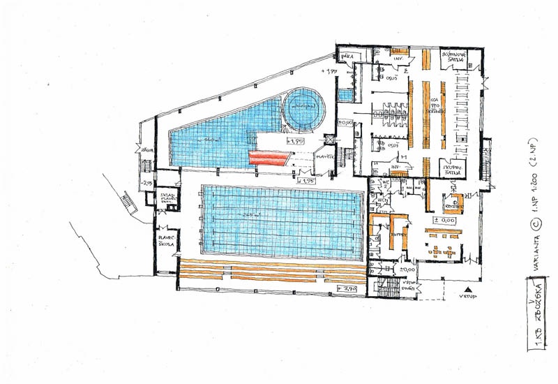 Zásadním nepravdivým tvrzením je, že došlo k jakýmsi rozsáhlým změnám původního projektu. Vyprojektovaná podoba stavby svým rozsahem naprosto odpovídá variantě odhlasované zastupitelstvem 13. dubna 2016: „Umístění šatnového zázemí do jednoho podlaží (1.NP), rozšíření stávajícího půdorysu jižním směrem na úkor dnešního parkoviště, občerstvení, vstupní hala ve stávajícím půdorysu; umístění nové velké haly bazénových atrakcí v návaznosti na jižní stěnu haly plaveckého bazénu v 2.NP; prostor dnešních šaten v 2.NP zrekonstruován na wellness.“