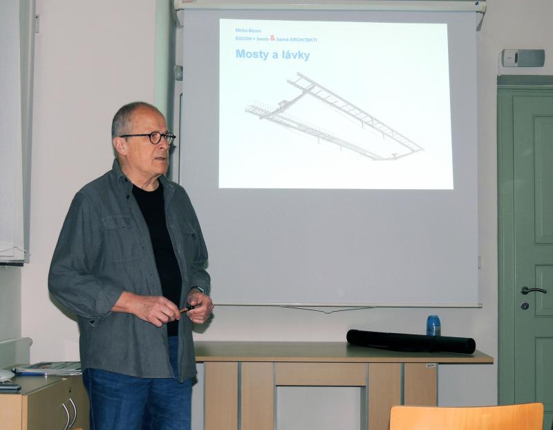 Společně se statikem Ing. Vladimírem Janatou prezentoval na radnici některé své realizace pěších lávek a referoval o tom, jakým způsobem nad těmito stavbami uvažuje a z jakého postoje ve svých projektech vychází. Ústředním tématem jeho prezentace byl kontakt kvalitního soudobého řešení s historickým prostředím či historickou stavbou. Na závěr představil své názory, kterým směrem by se mohly ubírat přípravy nové pěší lávky v Nymburce a případné zadání architektonické studie. Její místo na hraně památkové zóny jí mj. vystavuje panoramatickým pohledům přes otevřený prostor řeky. Setkání se účastnili i zástupci památkové péče. Projednání s komisí Národního památkového ústavu bude dalším krokem na cestě k vyřesení pěšího a cyklistického spojení nymburského centra s protilehlým břehem Labe.
