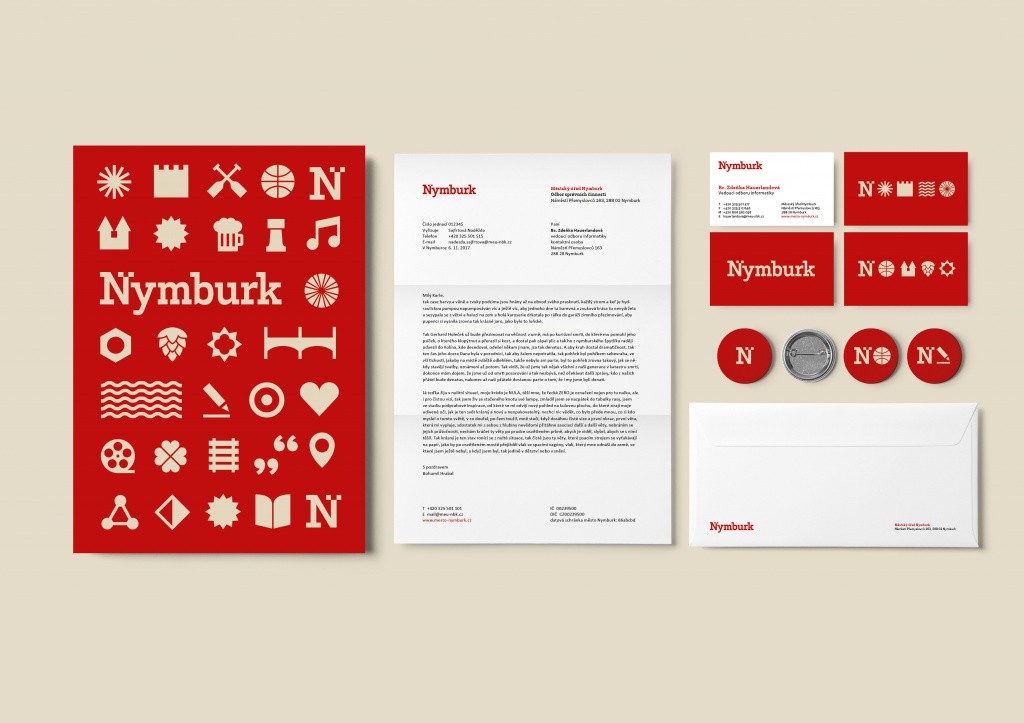 • Koncepční vizuální identita – ukázka principu vizuální identity na materiálech pro Nymburk