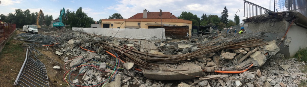 Společnost STRABAG, a. s. 3. srpna 2018 provedla první část demolice lávky.