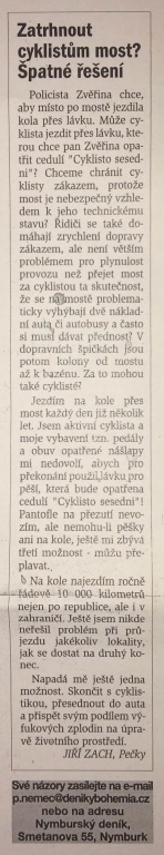 Reaguji na výzvu redakce a sděluji svůj příspěvek k problematice cyklistů na mostě.