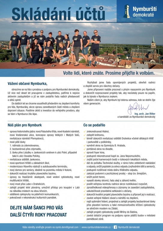 Vážení občané Nymburka, obracíme se na Vás s prosbou o podporu pro Nymburské demokraty.