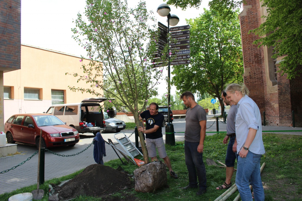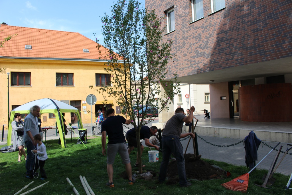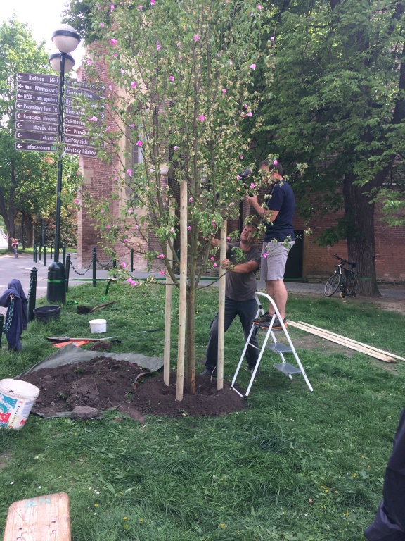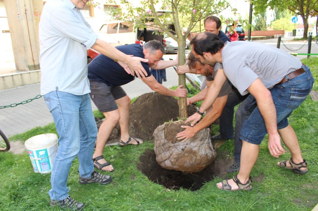 Ovocné stromy v Polabí již sice odkvetly, ale ten náš dnes podruhé "rozkvétal" přímo před našima očima. Zasadili jsme ho a políbilo se pod ním 63 párů. Všem díky za krásné prvomájové odpoledne a pišme si do kalendáře: "Za rok ve stejnou dobu na stejném místě."